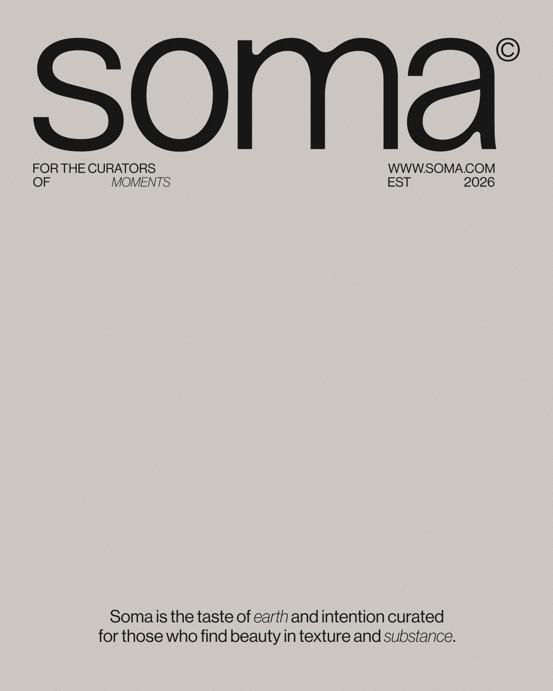 SOMA is a contemporary vineyard that treats winemaking as a form of slow, architectural craft. The challenge was to move away from traditional, ornate wine branding and instead create a visual language that feels unhurried. The objective was to appeal to the curators of moments — individuals who value the raw substance of the earth and the quiet power of a crafted product over loud marketing.